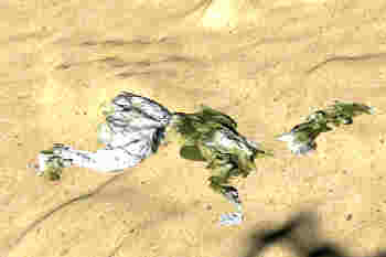 | Sinkt er nicht in sauerstoffarmen Wasser ab, so bilden sich Verwesungsgase | |