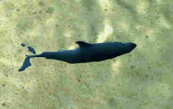 | Kopf und Schwanzflosse hängen nach unten. Je nach Achsenskelett zerfallen | ![]() |