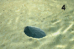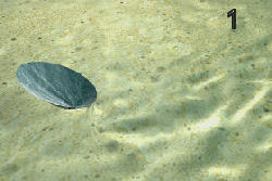 | und den Rand (Bild 2 und 3) und legt sich flach auf dem Boden. Nun bietet die Schale dem Wasser kaum noch eine Angriffsfläche und bleibt so liegen. | |