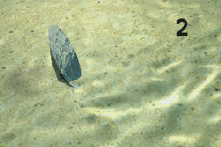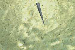 | Die Schneckenschale dreht sich durch die Wasserströmung über der Spitze (Bild1) | |
