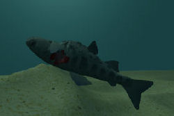 Nehmen wir mal an das ein Fisch Opfer eines Haiangriffes geworden ist. Der Hai hat den Fisch nur tödlich verletzt jedoch ist die Beute ihm entgleitet. Weiter gehen wir davon aus das die Schwimmblase bei diesen Angriff zerstört wurde und der Fisch zu Boden sinkt ohne das der Hai ihn fressen kann.