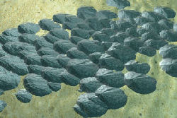 Auf diese Weise können sogenannte Pflaster entstehen. Muschelschalen legen sich dicht an dicht und bilden so einen richtigen Belag. |