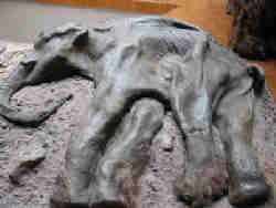 Der Tierkadaver kann auch vor der Sedimentierung durch die Sonne ausgetrocknet worden sein und als "Mumie" versteinert werden. |