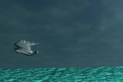 | Dabei drehen sich die Körper bei kegelförmiger Form über den dicksten Punkt und bleiben bei ungehemmter Einsteuerung mit der Spitze zur Strömung liegen. | |